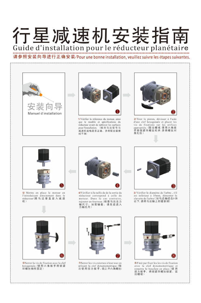 An installation notice will be provided with each gearbox Motoreducer sells. You can refer to it and make sure it is done according to the right process!